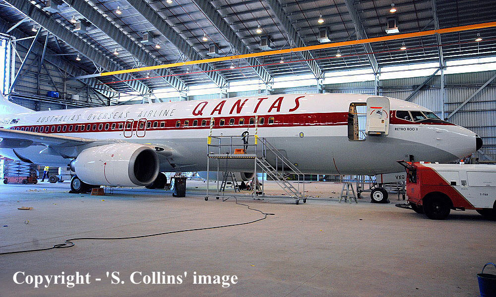 The Qantas Airways Boeing 737-838 VH-VXQ was rolled-out at Townsville in the the airline's original 'Boeing 707' livery. This repaint was commissioned to celebrate the airline's 95th Anniversary.