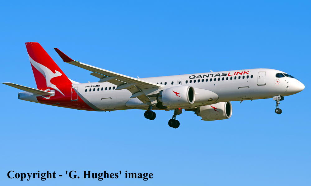 On This Day - November 20, 2025. The QantasLink / National Jet Systems Airbus A220-371 VH-X4I 'Echidna' arrived at Canberra (A.C.T.) having completed its delivery flight from Canada (Montreal, Mirabel) as Flight QLK6078. |