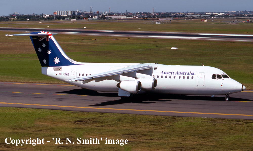 The ex-East-West Airlines British Aerospace 146-300 VH-EWR, having been transferred to Ansett Australia and repainted into the standard Ansett 'flag' livery, entered service with Ansett Express.