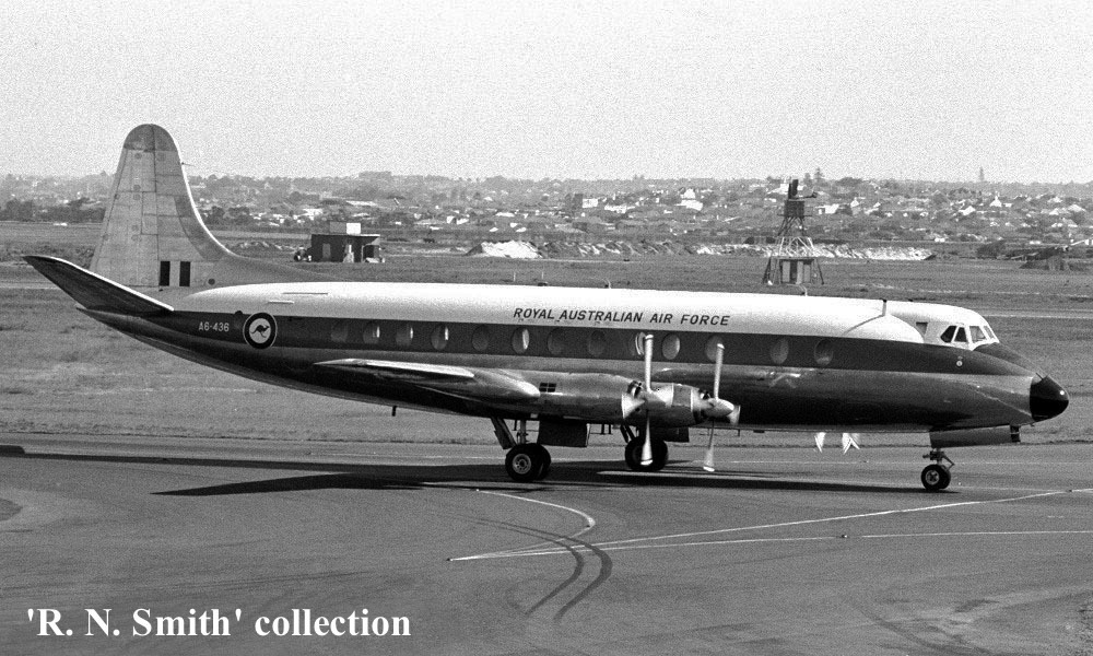 The Royal Australian Air Force Vickers Viscount 816 A6-436 arrived at Canberra (RAAF Fairbairn) having completed its delivery flight from the United Kingdom (Wisley, Surry). It was the 2nd Viscount delivered to the R.A.A.F. It was used by No. 34 Squadron on V.I.P. duties.