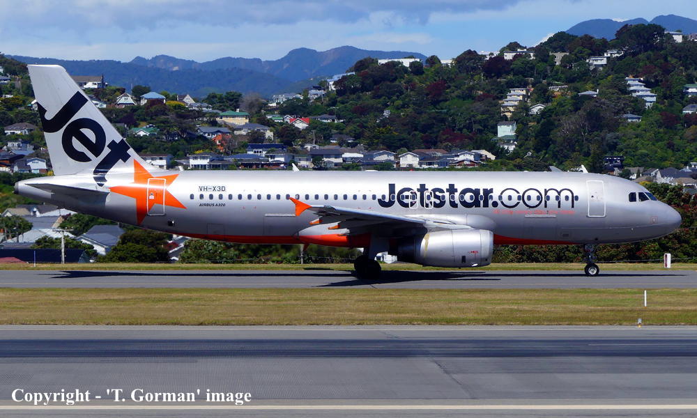 VH-X3D. Jetstar - in the original livery at Wellington Airport, December 27, 2025.