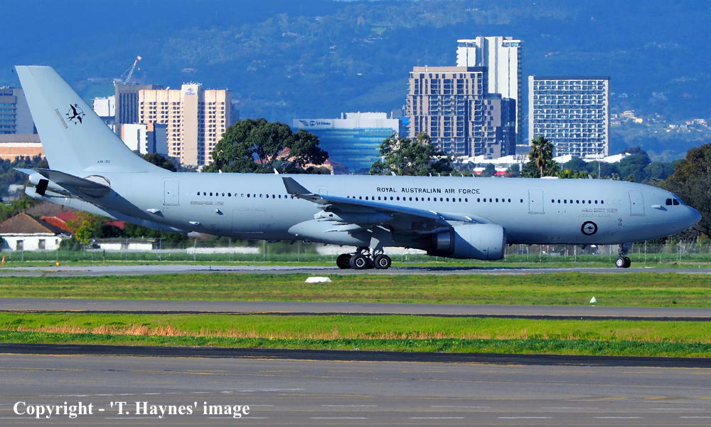 A39-005. Royal Australian Air Force - in the low viz grey livery at Adelaide West Beach Airport, August 14, 2022. (T. Haynes Copyright Image 0330-547.) |
