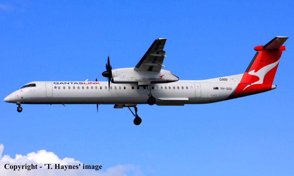 VH-QOU. Bombardier DHC-8-402Q. c/n 4275. Was also registered as: C-FYGQ. |