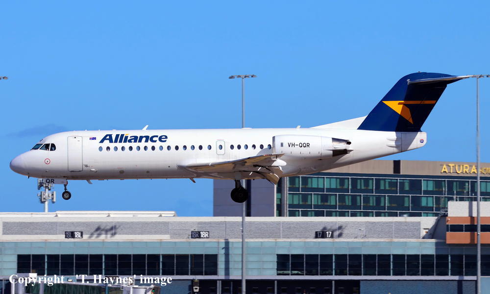 VH-QQR. Fokker F28-070. c/n 11564. Was also registered as: HA-LMA; YR-KMA. |