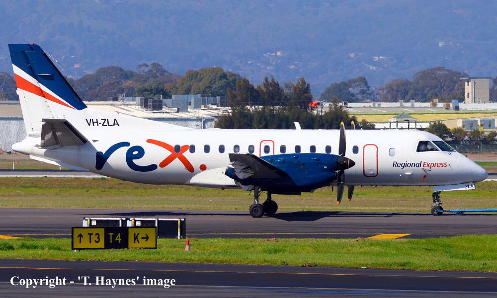 This aircraft was built by Saab Aircraft AB, Linkoping, Sweden - 1995 First flown with the test registration 'SE-C71' - August 1995 Powered by General Electric CT7-9B turboprop engines Sold to Lambert Leasing Inc, USA - September 07, 1995 Entered onto the United States Aircraft Register as N371AE - September 07, 1995 Registered to American Leasing Corporation Leased to Simmons Airlines as the registered operator Sold to First Security Bank of Utah - December ?, 1995 Leased to Fairbrook Leasing Inc - December ?, 1995 Sub-leased to Simmons Airlines as the registered operator - December ?, 1995 Simmons Airlines merged with American Eagle Airlines - May 01, 1998 The aircraft was withdrawn from service and stored at Kansas City - September 27, 2006 It was returned to the lessor - October 25, 2006 Registered to Wells Fargo Bank Northwest, Trustee - June 2007 Departed the United States on the delivery flight to Australia - June 02, 2007 It arrived at WaggaWagga on completion of the delivery flight from the United States - June 05, 2007 Ferry route: Nashville - Yuma - Christmas Island - Apia - Coolangatta - Wagga Wagga Cancelled from the United States Aircraft Register - June 07, 2007 Entered onto the Australian Aircraft Register as VH-ZLA - June 20, 2007 Registered to REX Investment Holdings Pty Ltd, Sydney Operated its first revenue service Wagga Wagga - Melbourne (Tullamarine) as ZL3281 - August 04, 2007 Registered to Rex Investment Holdings Pty Ltd, Sydney - April 02, 2014 Leased to Regional Express Pty Ltd, Sydney as the registered operator Current with Regional Express |