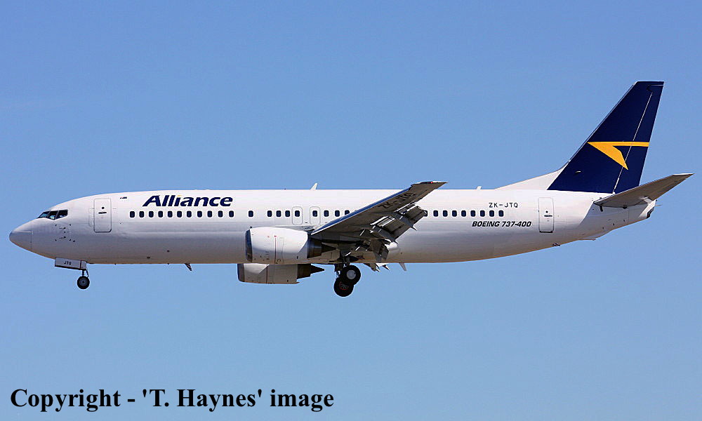 On This Day - April 08, 2013. The Airwork NZ Boeing 737-476 ZK-JTQ having completed its 9-day 'wet-lease' to Solomon Airways, departed Brisbane (Queensland) on its ferry flight to Perth (Western Australia) as Flight AWK737, to resume its operation with Alliance the next day. |