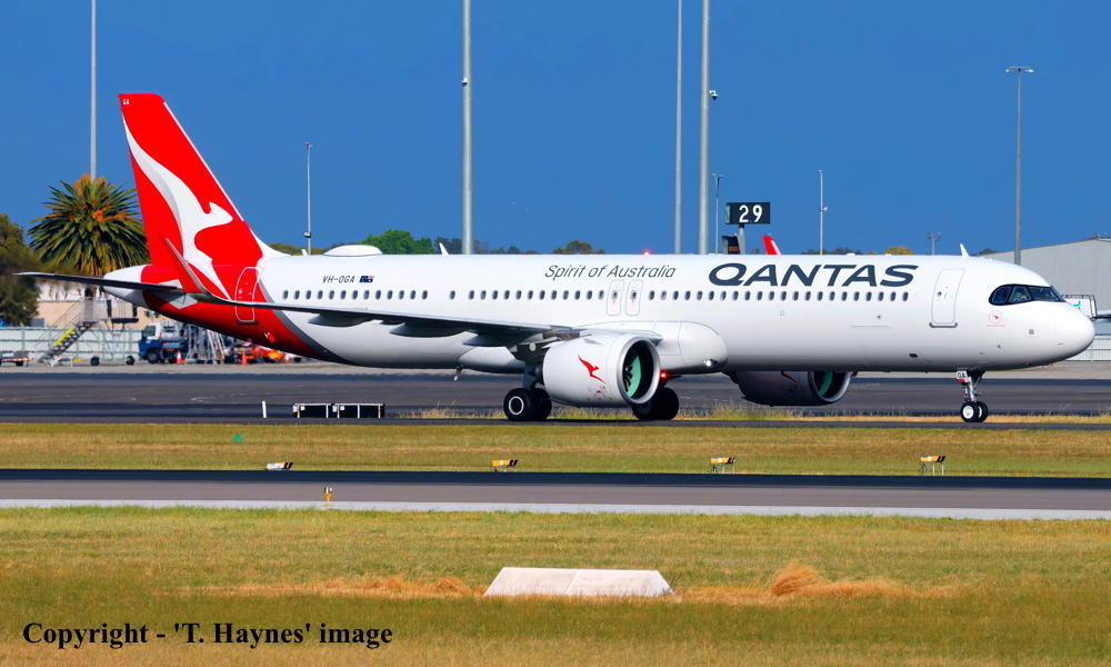This aircraft was ordered new by Qantas Airways - ? It was the airline's 1st Airbus A321-271(XLR) It was built by Airbus in Germany at the Hamburg (Finkenwerder) plant - 2024 / 2025 Powered by International Aero Engine PW1133GAR-JM turbo-fan engines It was observed at Hamburg (Finkenwerder) as 'D-AXXE' in primer and without engines installed - November 25, 2024 It was observed at Hamburg (Finkenwerder) in the 'Qantas' livery and without engines installed - February 15, 2025 Entered onto the Australian Aircraft Register as VH-OGA - March 17, 2025 Registered to Qantas Airways Limited, Mascot, Sydney It was observed at Hamburg (Finkenwerder) in the 'Qantas' livery and with the engines installed - March 21, 2025 Engine run, taxi check and perforrmed as '12323R2' - April 04, 2025 Engine run, taxi check and rejected take-off perforrmed (08:26 UTC) as '12323R3' - April 08, 2025 First test flight (T1) flown at Hamburg (13:39 - 17:07 UTC) as 'D-AXXE' (AIB323A) - April 08, 2025 Engine run and taxi check performed as 'D-AXXE' - May 14, 2025 Taxi-check and rejected take-off performed - June 04, 2025 Second test flight (T2) flown at Hamburg (07:04 - 08:18 UTC) as 'D-AXXE' (AIB323B) - June 05, 2025 Third test flight (T3) flown at Hamburg (Finkenwerder 07:04 - 08:18 UTC) as 'D-AXXE' (AIB323C) - June 17, 2025 Route: Hamburg (Finkenwerder) - Hamburg (Helmut Schmidt) - Hamburg (Finkenwerder) Fourth test flight (C1) flown at Hamburg (Finkenwerder 07:19 - 09:18 UTC) as 'D-AXXE' (AIB323CD) - June 24, 2025 Route: Hamburg (Finkenwerder) - Hamburg (Helmut Schmidt) - Hamburg (Finkenwerder) Accepted by Qantas Airways at Hamburg (Finkenwerder) - June 30, 2025 The aircraft was named 'Great Ocean Road' Departed Germany (Hamburg - 07:01 UTC) on the delivery flight to Australia as QF6041 - June 30, 2025 It arrived at Sydney (Kingsford Smith - 09:45 AEST) on completion its flight from Germany - July 02, 2025 Delivery route: Hamburg (Finkenwerder) - Bangkok - Sydney Flight time: Hamburg - Bangkok (11 hours 7 minutes) - Bangkok - Sydney (9 hours 10 minutes) Prior to entering commercial service it operated approximately 242 test and training flights Operated its first revenue service as Flight QF1321 - September 25, 2025 This flight number was used to celebrate the first commercial service of this new aircraft type Route: Sydney (Kingsford Smith - 09:12 AEST) - Melbourne (Tullamarine - 11:32 AEST) Before landing at Melbourne the aircraft made a double circuit over the Great Ocean Road at 3,000 feet Current with Qantas Airways, Australia |
