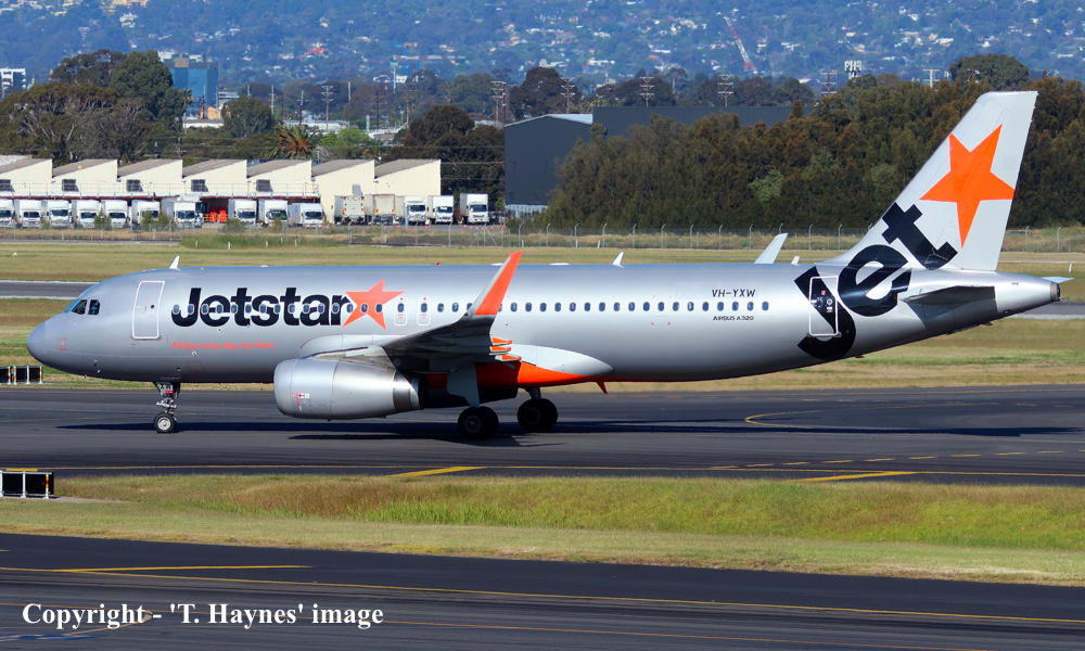 VH-YXW. Jetstar - in the standard livery at Adelaide West Beach Airport, August 13, 2022. (T. Haynes Copyright Image 0321-312.) |