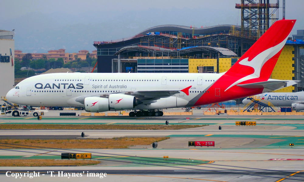 VH-OQL. Qantas Spirit of Australia - 'Phyllis Arnott' in the 'Silver Roo' livery at Los Angeles Airport, May 10, 2019. (T. Haynes Copyright Image 0380-163.) |