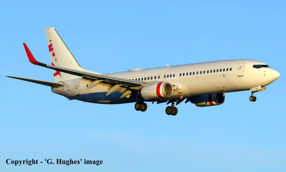 This aircraft was ordered new by Virgin Blue Pty Ltd - ? Powered by CFM International CFM56-7B26 engines Rolled off the Boeing production line at Seattle (Renton) with winglets - July 09, 2006 First flown as VH-VUH in the standard 'Virgin Blue' livery - July 19, 2006 Entered on the Australian Aircraft Register as VH-VUH - July 26, 2006 Registered to VBNC5 Pty Ltd, Spring Hill, Queensland Leased to Virgin Blue Airlines Pty Ltd as the registered operator Accepted by Virgin Blue at Seattle (Boeing Field) - July 31, 2006 Departed Seattle (Boeing Field) on the delivery flight to Australia as DJ9081 - July 31, 2006 It arrived at Brisbane on completion of the delivery flight from the United States - August 02, 2006 Delivery route: Seattle - Lihue - Nadi - Brisbane The aircraft was named 'Tickled Blue' It was later renamed 'Lady Rebecca' at Brisbane after a charity auction - August 07, 2006 Operated its first revenue service Brisbane - Sydney (Kingsford Smith) as DJ232 - August 11, 2006 Rolled out at Worland Aviation (Townsville) in the 'Pacific Blue' livery - October 21, 2007 Operated its final Virgin Blue revenue service Coolangatta - Melbourne (Tullamarine) as DJ998 - June 01, 2008 Cancelled from the Australian Aircraft Register - June 10, 2008 Entered onto the New Zealand Aircraft Register as ZK-PBI - June 11, 2008 Registered to VBNC5 Pty Ltd, Spring Hill, Queensland Leased to Pacific Blue Airlines (N.Z.) Ltd, Christchurch as the registered operator Ferried Melbourne (Tullamarine) - Christchurch as PBN9070 - June 15, 2008 Operated its first Pacific Blue service Christchurch - Wellington as DJ3025 - June 15, 2008 Pacific Blue was renamed Virgin Australia Airlines (NZ) - December 2011 Cancelled from the New Zealand Aircraft Register - February 24, 2015 Entered onto the Australian Aircraft Register as VH-VUH - February 24, 2015 Registered to GAL MSN One Ltd, London Leased to Virgin Australia Airlines Pty Ltd, Spring Hill, Queensland as the registered operator Registered to Stellar Aircraft Trading 3 Ltd, Dublin, Ireland - May 04, 2023 Leased to Virgin Australia Airlines Pty Ltd, Spring Hill, Queensland as the registered operator Current with Virgin Australia Airlines |
