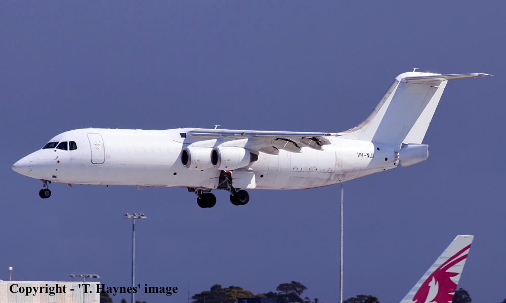 VH-NJI. British Aerospace 146-300. c/n E3154. Was also registered as: G-BRXI; G-TNTF; EC-712; EC-FFY; OO-TAS; EC-MCL. |