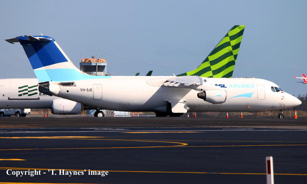 VH-SJE. British Aerospace 146-300QT. c/n E3153. Was also registered as: G-BRPW; G-TNTE; OO-TAJ; D-AHWS; 5X-AAZ. |