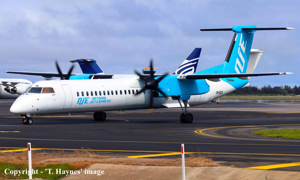 VH-8QA. National Jet Express - in the standard livery at Adelaide West Beach Airport, August 31, 2025. (T. Haynes Copyright Image 2924-325.) |