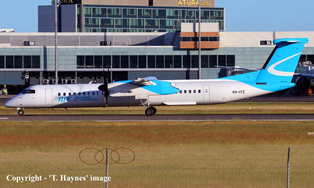 VH-IYZ. Bombardier DHC-8-402. c/n 4528. Was also registered as: C-FNXF; HS-DQG; VP-CRE. |