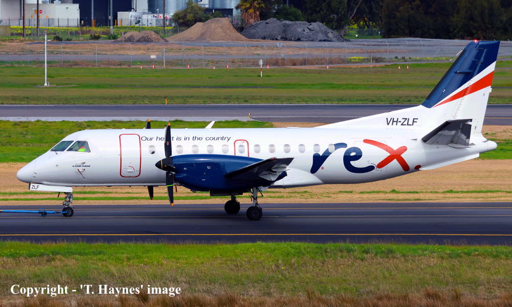This aircraft was built by Saab Aircraft AB, Linkoping, Sweden - 1995 First flown with the 'test' registration 'SE-C74' - October 04, 1995 Entered onto the United States Aircraft Register as N374AE - October ?, 1995 Registered to Lambert Leasing Inc Delivered to American Eagle Airlines, Dallas Fort Worth, Texas, United States - October 31, 1995 It was withdrawn from service by American Eagle and stored at Abilene, Texas - October 06, 1998 The aircraft had flown 6,195 hours with 6,989 cycles to date It was returned to service with American Eagle - ?> The aircraft was badly damaged by hail at Dallas Fort Worth, Texas - April 05, 2003 It was ferried to Abilene, Texas for repairs - April 08, 2003 The aircraft had flown 13,641 hours with 15,145 cycles to date It was observed in service with American Eagle at Dallas Fort Worth, Texas - April 09, 2004 Ferried Abilene - Kansas City and parked awaiting overhaul - August 31, 2006 Ferried Kansas City - Abilene following its overhaul for 'return-to-service' - August 31, 2006 The aircraft was returned to the lessor - November 29, 2006 Ferried Abilene - Nashville (Tennessee) for preparation for its lease to REX - December 21, 2006 It was observed at Nashville (Tennessee) in the full 'REX Airlines' livery - April 17, 2007 Leased to REX Regional Express Airlines - August 01, 2007 It departed Nashville (Tennessee) on the delivery flight to Australia - August 01, 2007 It arrived at Wagga Wagga on completion of the delivery flight from the United States - August 05, 2007 Delivery route: Nashville - Yuma - Christmas Island - Apia - Coolangatta - Orange - Wagga Wagga Cancelled from the United States Aircraft Register - August 08, 2007 Entered onto the Australian Aircraft Register as VH-ZLF - August 17, 2007 Registered to Regional Express Holdings Ltd, Forrest Hill, NSW Registered to REX Investment Holdings Pty Ltd, Mascot, Sydney - April 02, 2014 Leased to Regional Express Pty Ltd, Mascot, Sydney as the registered operator Current with Regional Express |